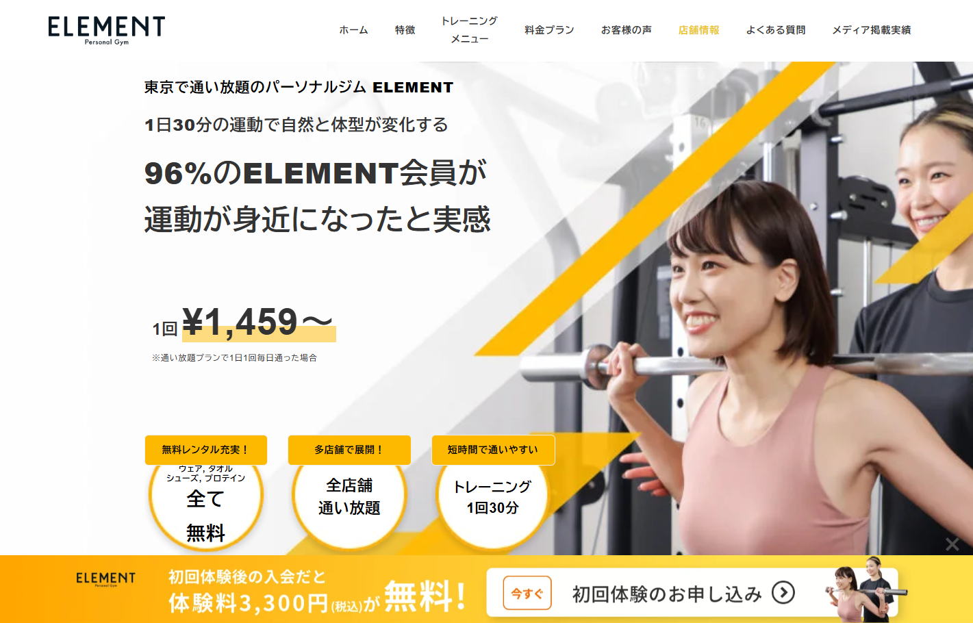 東京都に展開をするフィットネスジムのパーソナルジム ELEMENTとしてご掲載をいただいております!