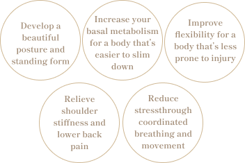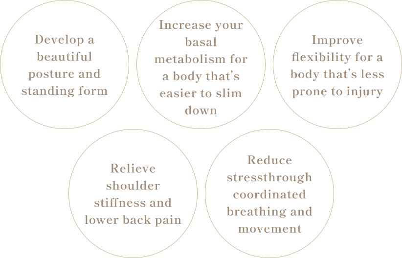 FMB’s Pilates sessions are conducted using specialized machines such as the Reformer and the Chair. By training with these machines, you can effectively learn how to control your movements and adjust resistance, allowing you to transform your body more efficiently.It’s highly recommended even for those who haven’t exercised for a long time or feel they’re not good at physical activity, as it makes it easier to connect with your body’s balance and condition.