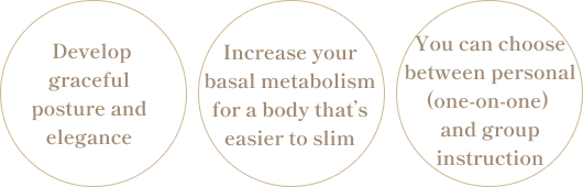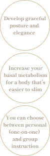 At FMB, in addition to machine Pilates, we also offer weight training guided by professional trainers. Strengthen your inner muscles with Pilates to achieve beautiful posture, and build larger muscles through personal training to support weight loss and lift your hips.