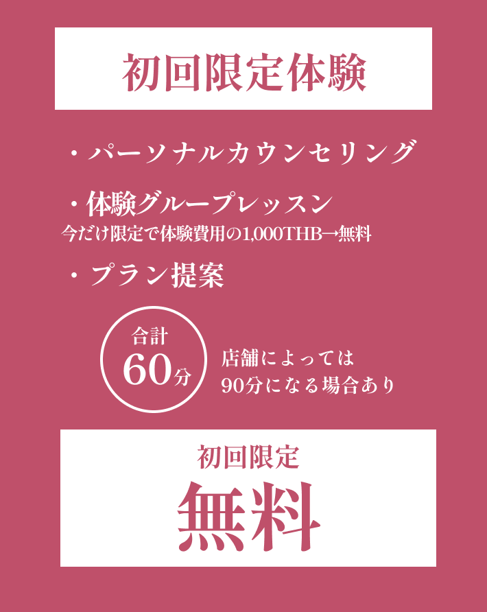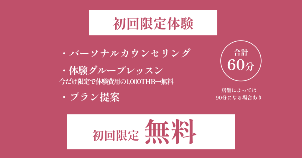 ※今だけ限定でパーソナル体験費用の1,000THB→無料