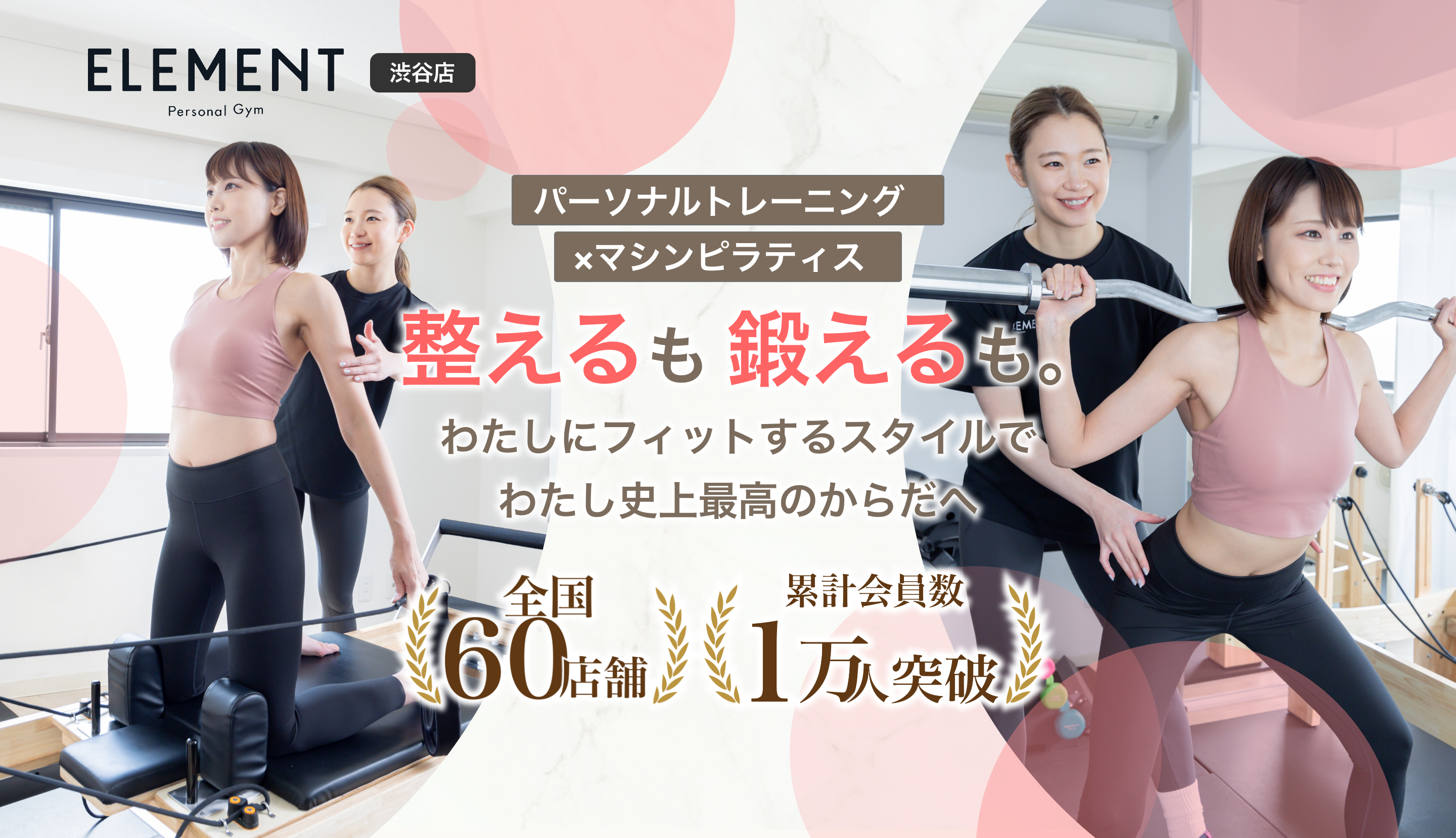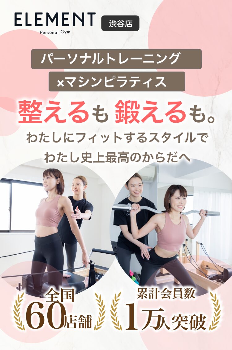 ELEMENTでは、パーソナルトレーニングの設備に加えて、今話題のピラティスマシンも完備。ご自身の身体や目的に合わせて選ぶことができます。