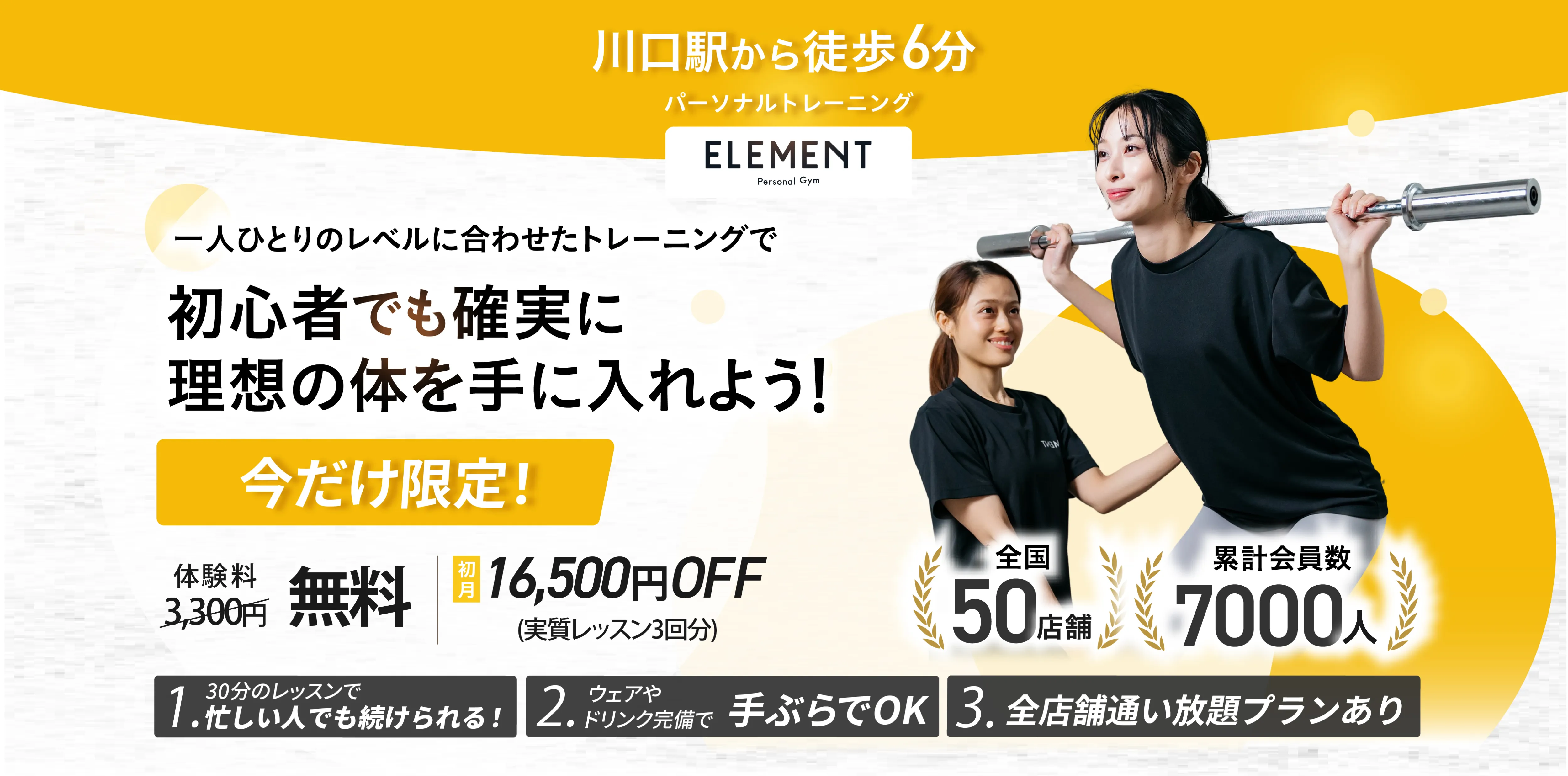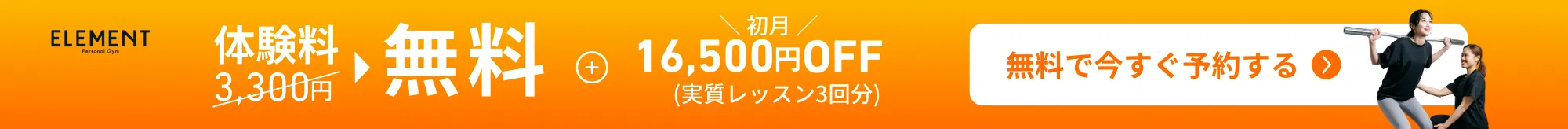 そこでELEMENTでは、業界最安値の1回1,459円〜という値段設定にいたしました。内装など徹底的に無駄なコストをカットしつつ、トレーナーや機材にはこだわり、お客様が続けやすい環境を実現しました。
