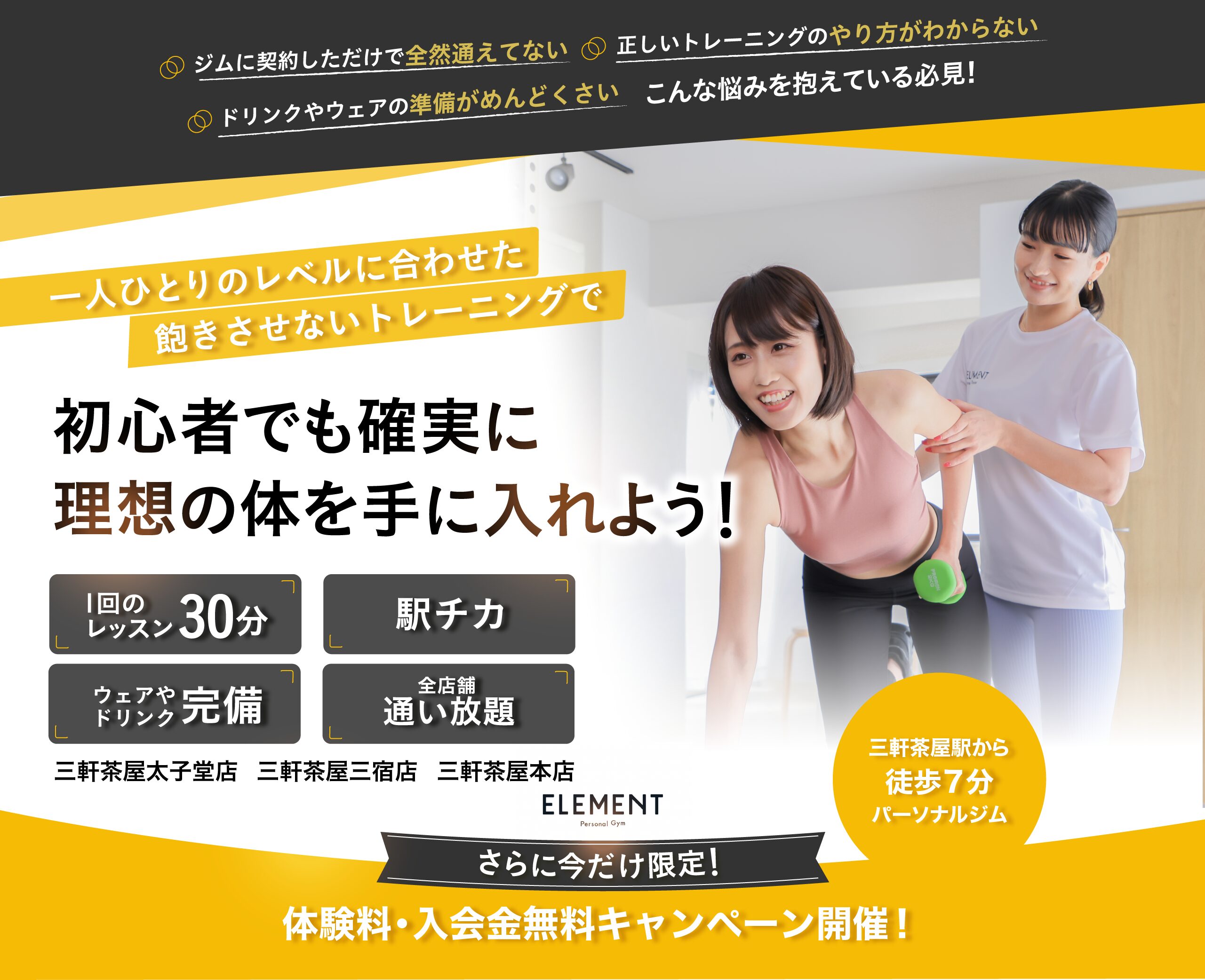 A. 大丈夫です。いままでに挫折したのは、「続ける仕組み」がなかったからです。ELEMENTのトレーニングは、「継続して習慣化すること」を目標として、継続できるプランを提案しています。また、トレーニングできつすぎる負荷をかけず、続けられる内容を組み、続けることを第一にしています。 習慣化さえできてしまえば、誰でも結果が出せるので、ご安心ください。