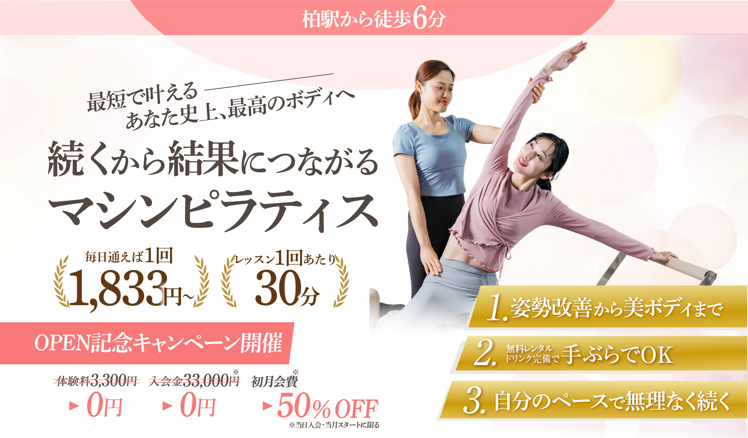 きれいなカラダを作るには、ピラティスを継続することが何より大切。続けやすい仕組みにこだわりました。