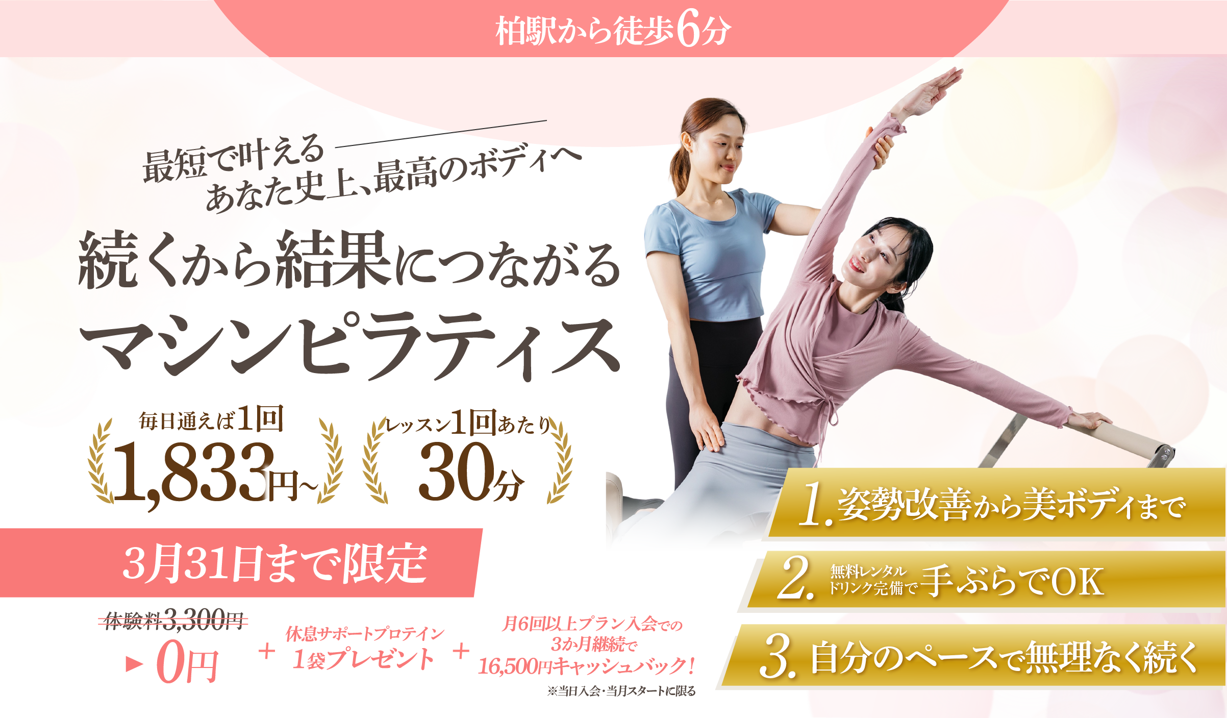マットピラティスと異なり、負荷や可動域を調整できるので、 効果的にカラダを変えられます。左右・前後のバランスの違いに自分でも気づきやすく、 体の状態に向き合えるからこそ、どんどん内側から変わっていけるのです。