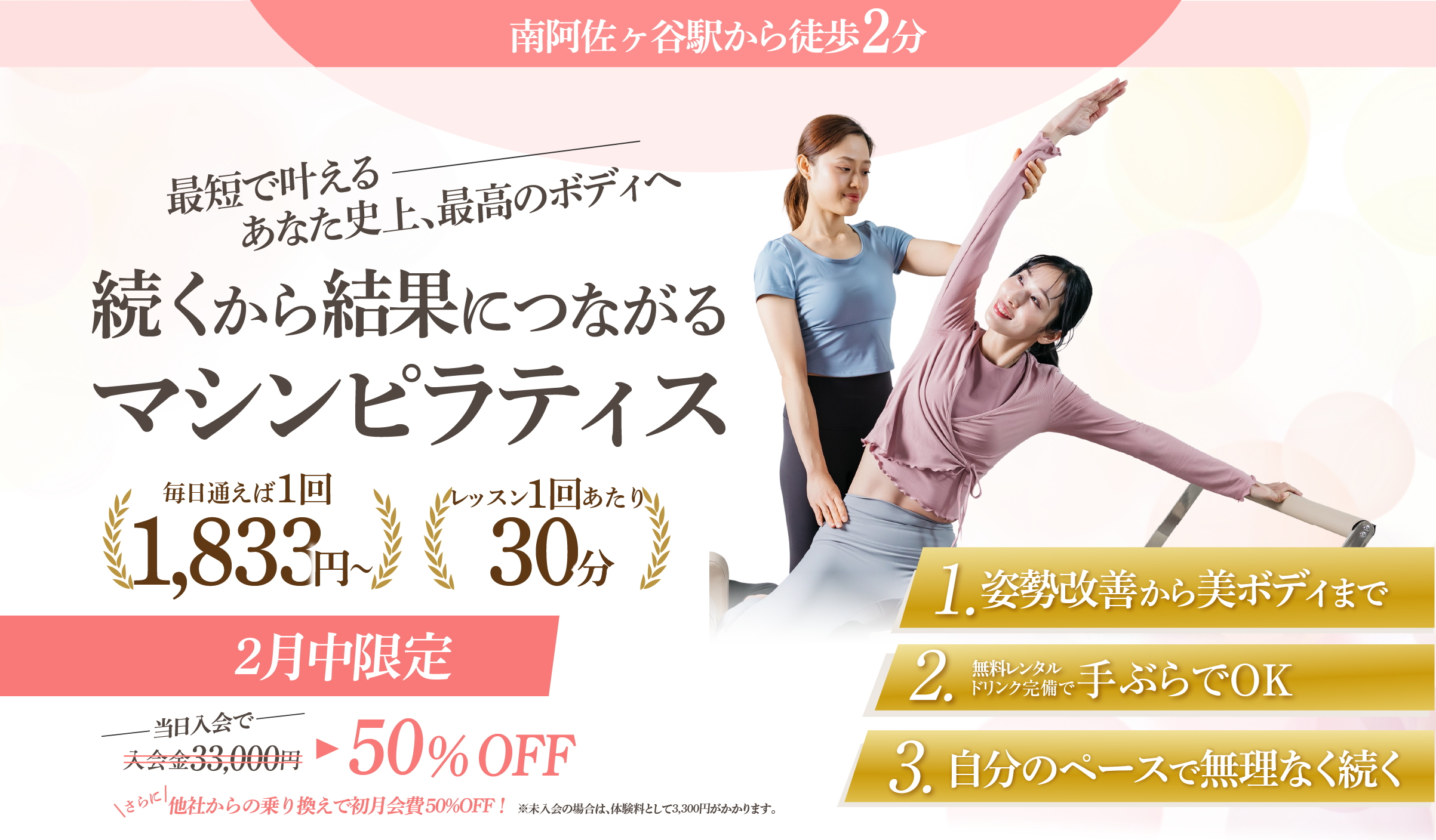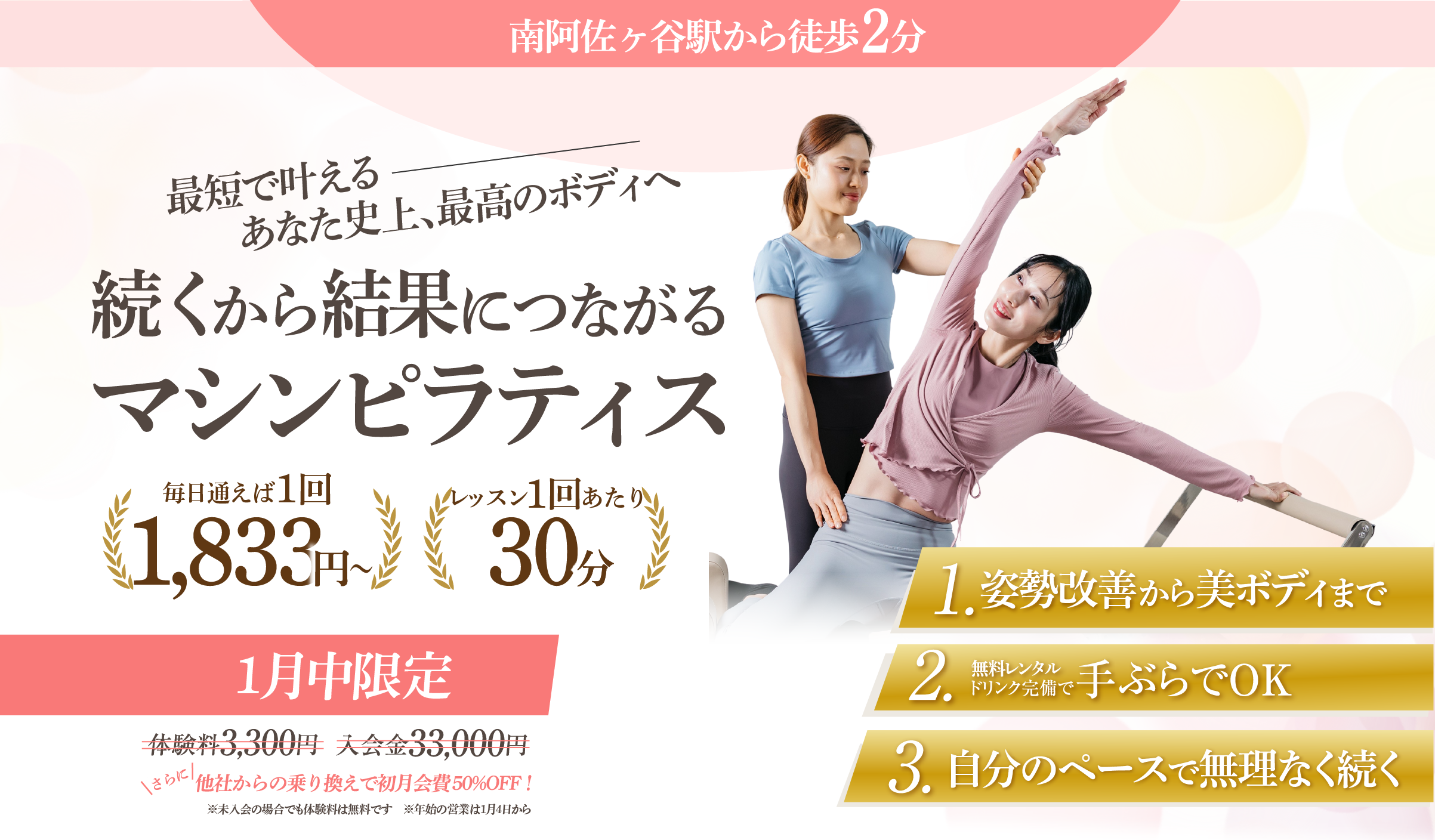 初めてのマシンピラティスでちょっと緊張しましたが、トレーナーさんがとても丁寧に優しく教えてくださるので、安心して受けることができました。