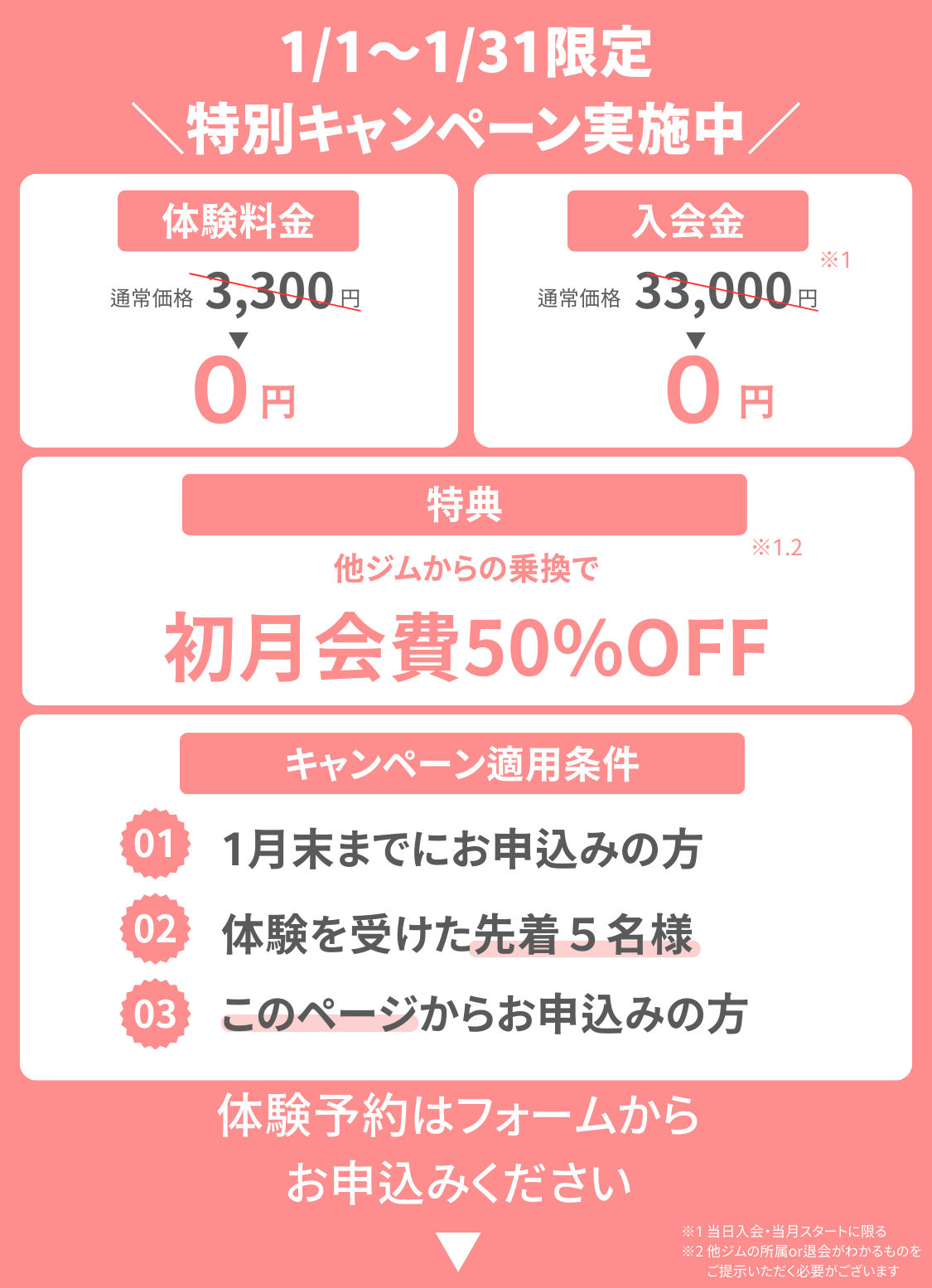 30分のレッスンを実際に体験いただきます。 初心者や運動が苦手な方にも、しっかり個別でサポートするので安心してください!