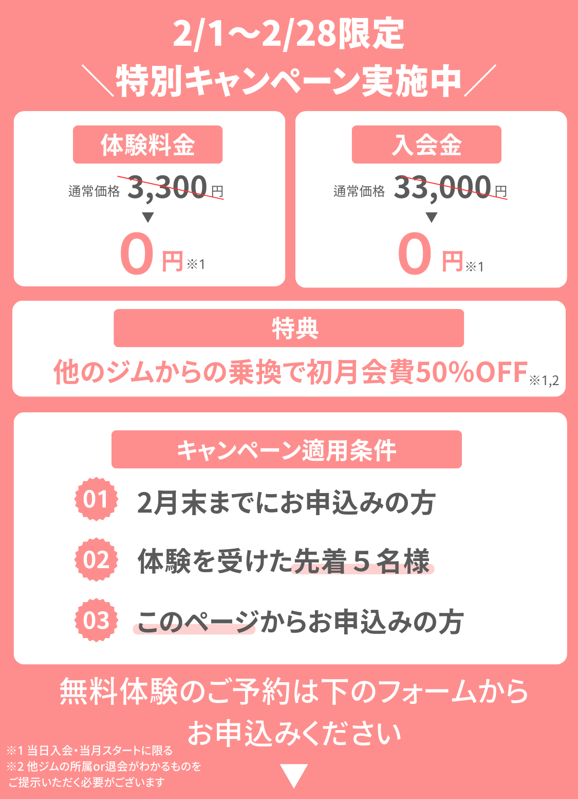 30分のレッスンを実際に体験いただきます。 初心者や運動が苦手な方にも、しっかり個別でサポートするので安心してください!