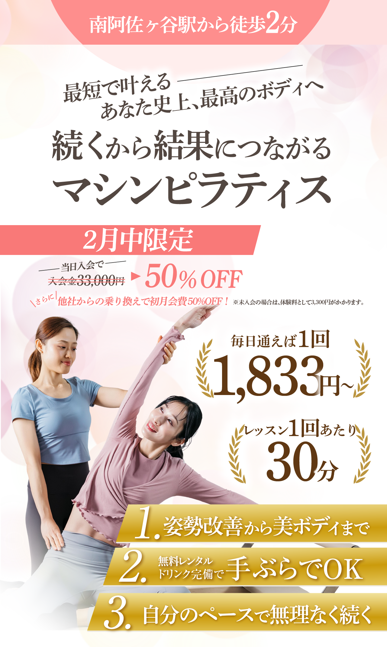初めてのマシンピラティスでちょっと緊張しましたが、トレーナーさんがとても丁寧に優しく教えてくださるので、安心して受けることができました。