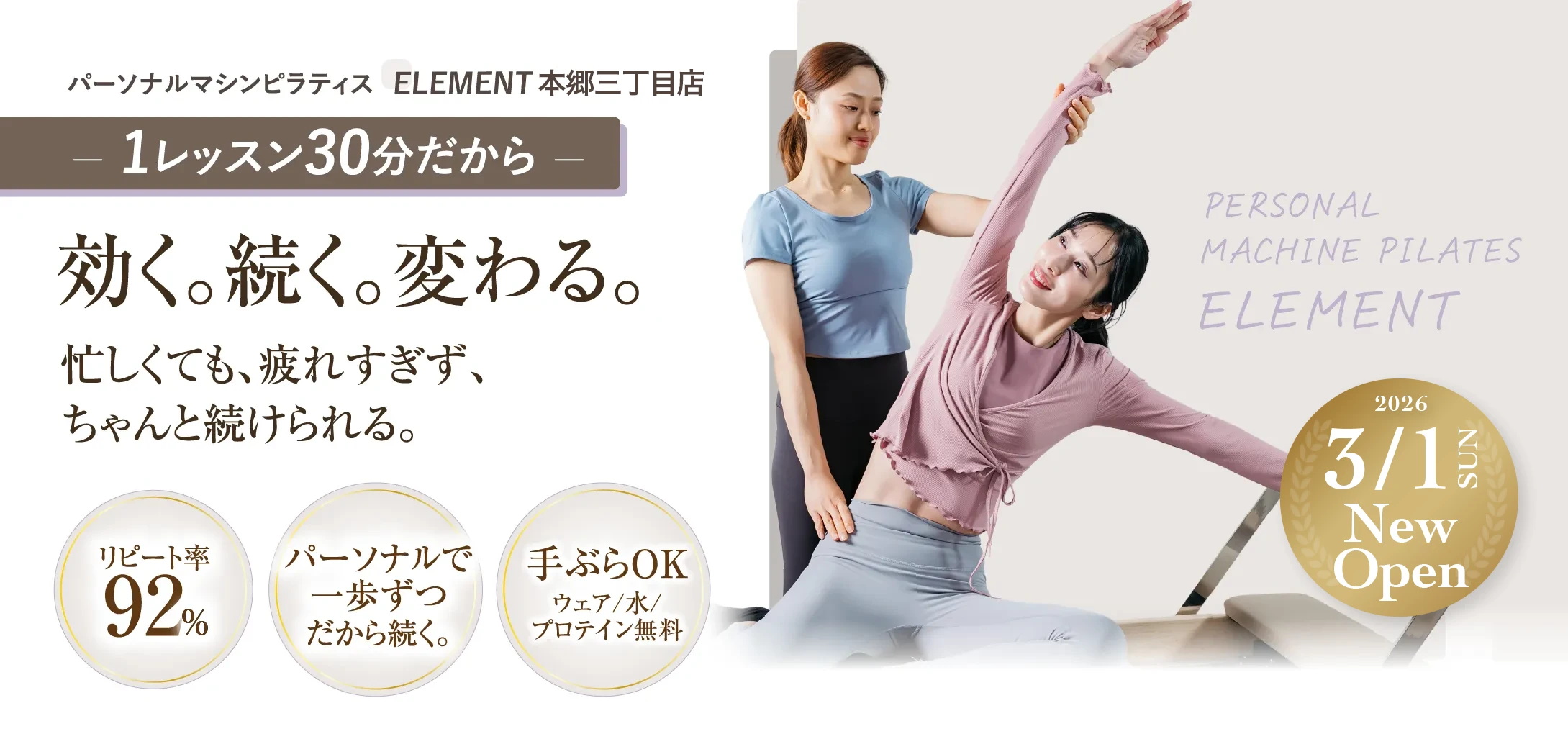 きれいなカラダを作るには、ピラティスを継続することが何より大切。続けやすい仕組みにこだわりました。