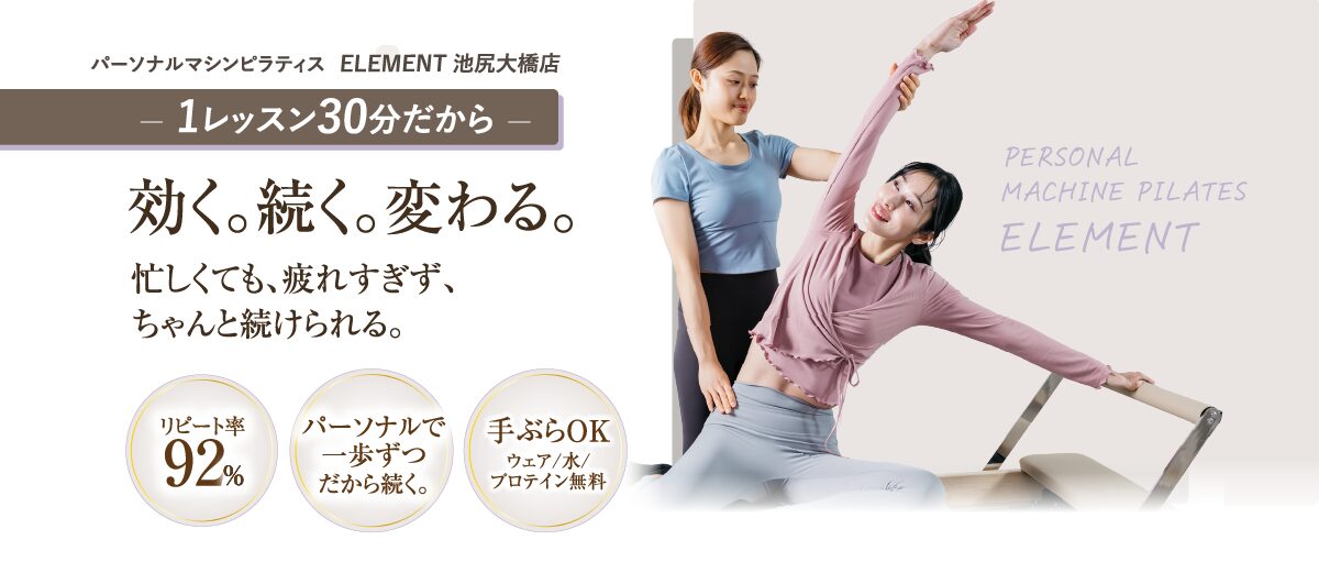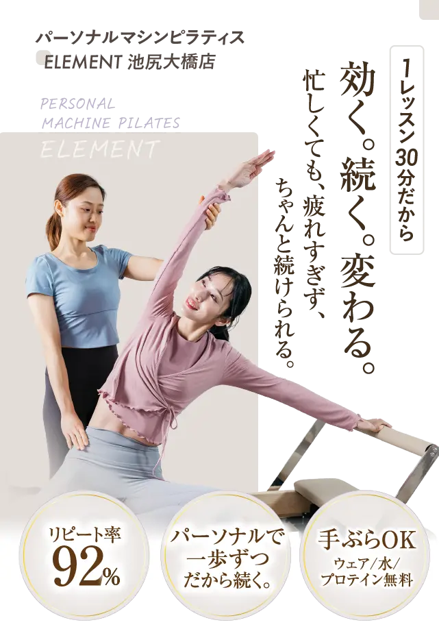 ELEMENTは本当に結果を出してほしいから、マンツーマンのピラティスを提供しています。
