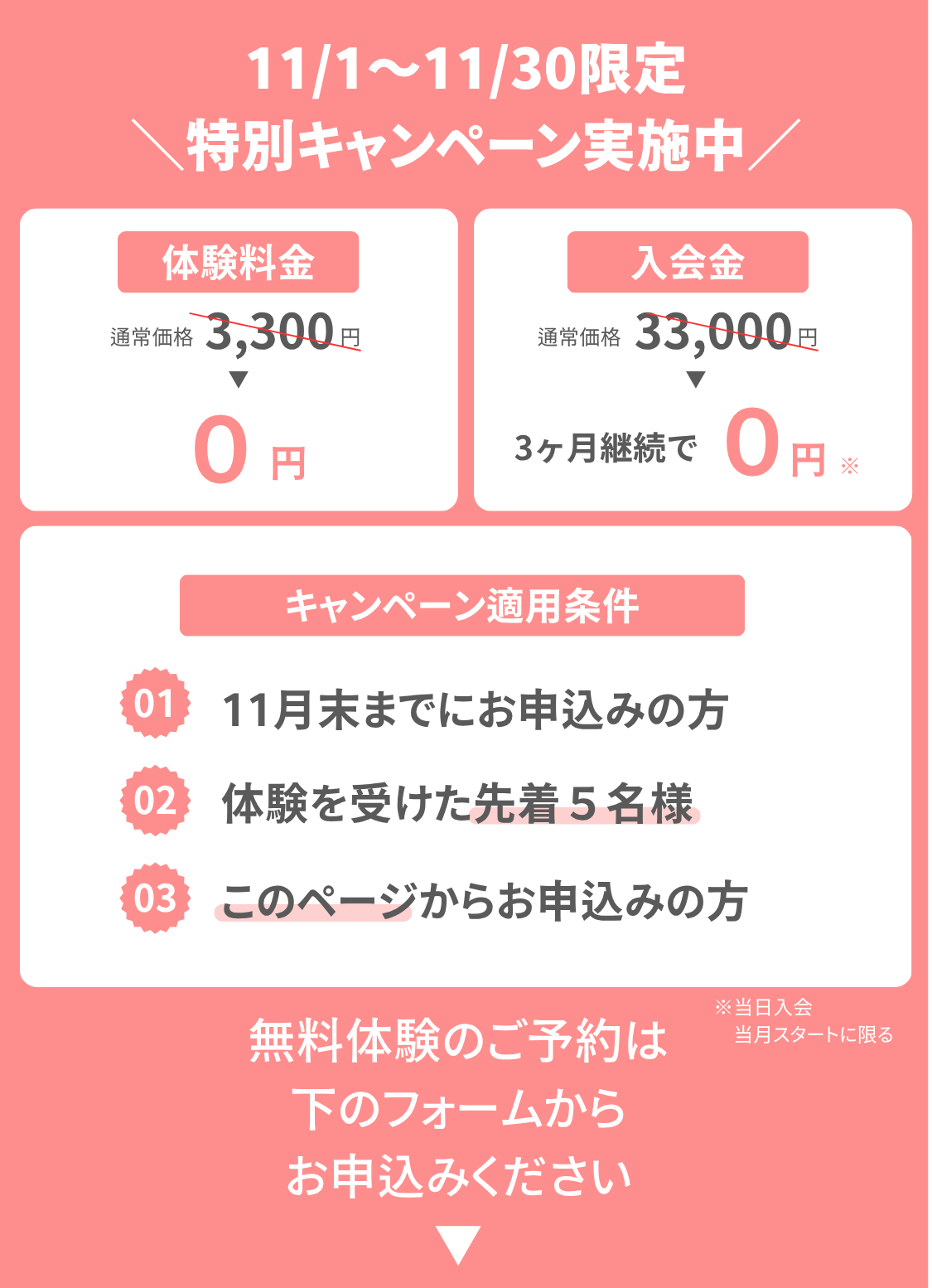 30分のレッスンを実際に体験いただきます。 初心者や運動が苦手な方にも、しっかり個別でサポートするので安心してください!