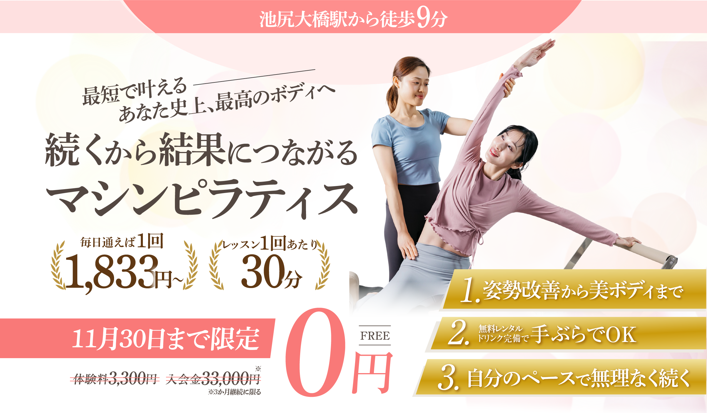 マットピラティスと異なり、負荷や可動域を調整できるので、 効果的にカラダを変えられます。左右・前後のバランスの違いに自分でも気づきやすく、 体の状態に向き合えるからこそ、どんどん内側から変わっていけるのです。