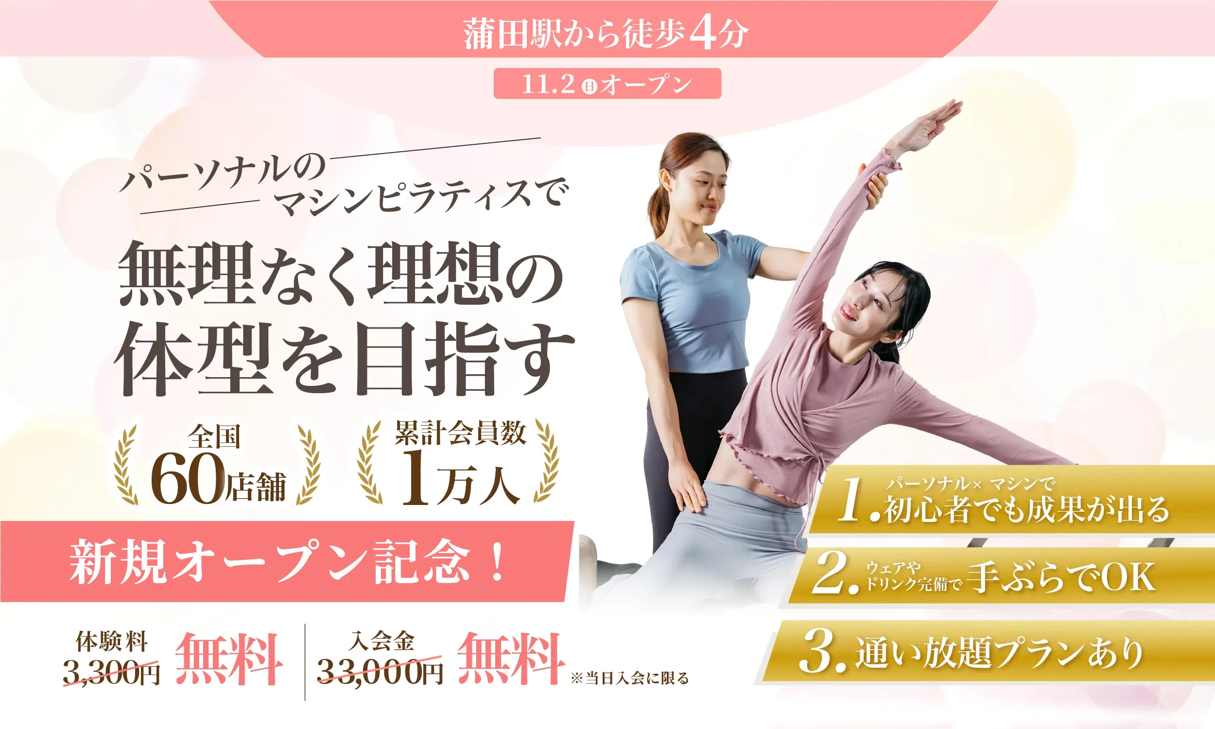 その点、弱い筋肉に集中してアプローチできるマシンピラティスは、全身のバランスを整えられます。 弱い部位を意識したレッスンを提案できるパーソナルなら、より効果的!