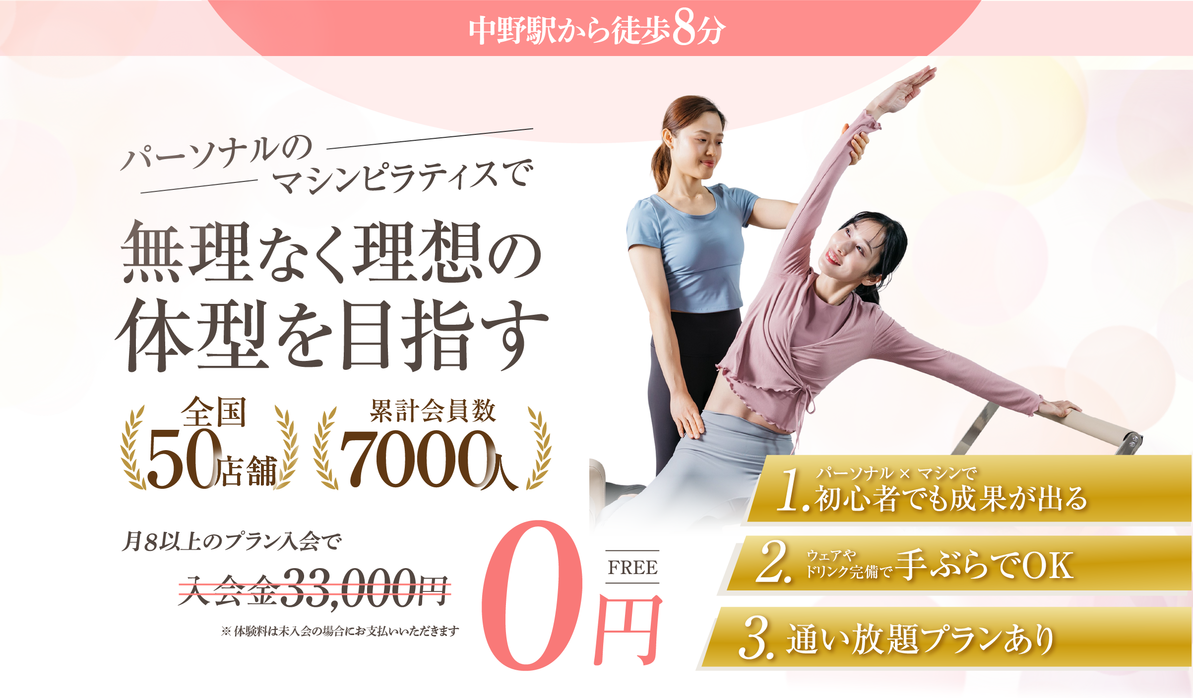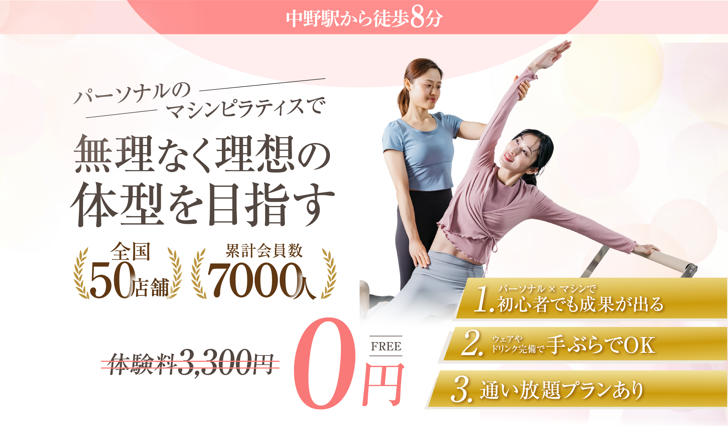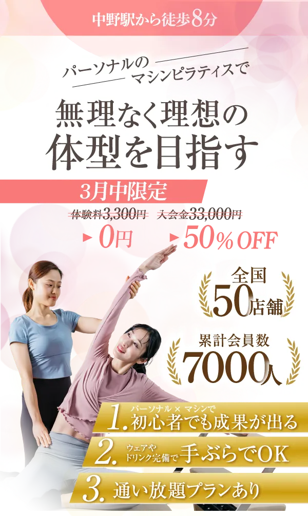 初めてのマシンピラティスでちょっと緊張しましたが、トレーナーさんがとても丁寧に優しく教えてくださるので、安心して受けることができました。