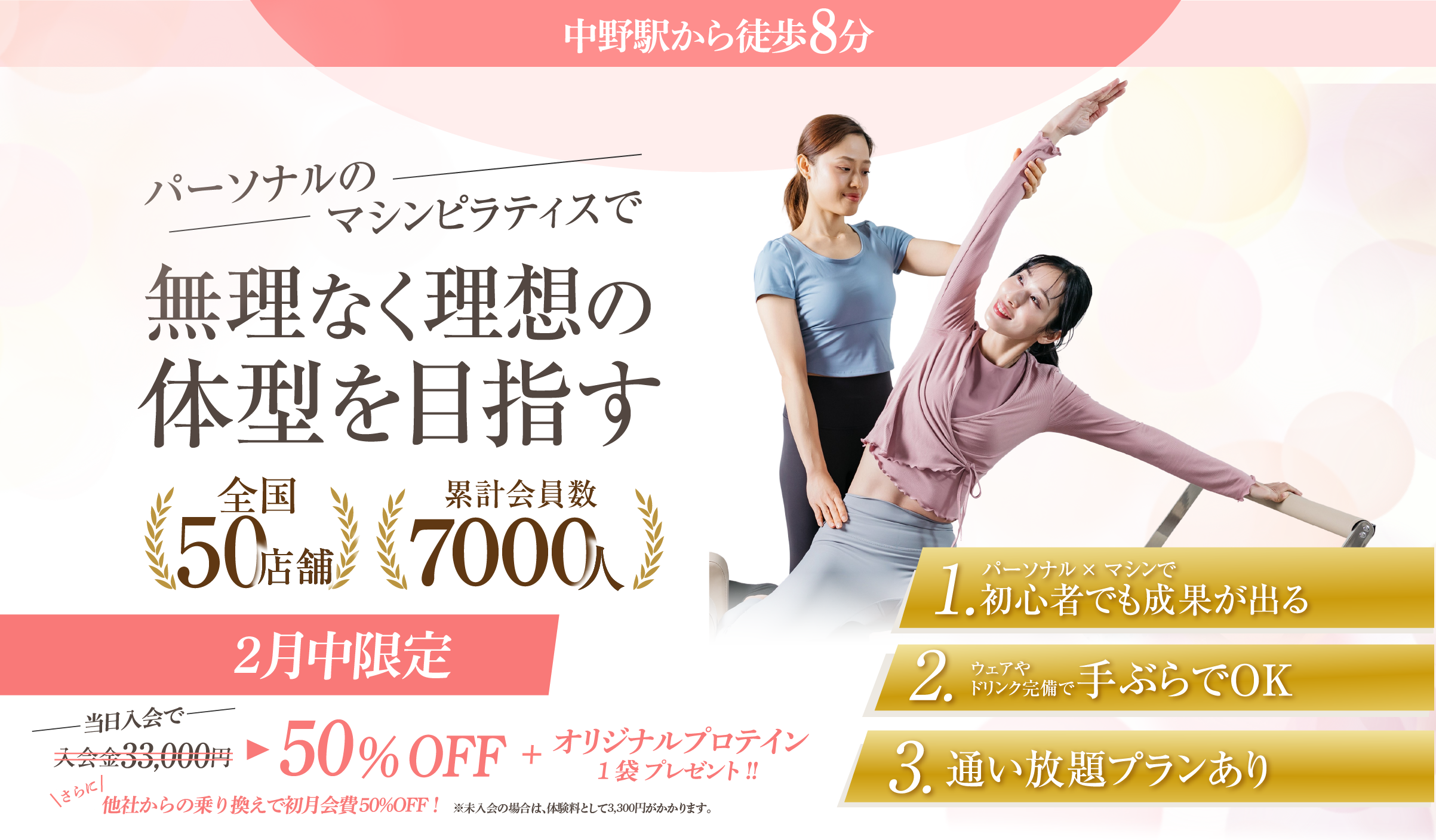 入会金半額+プロテイン1袋プレゼント