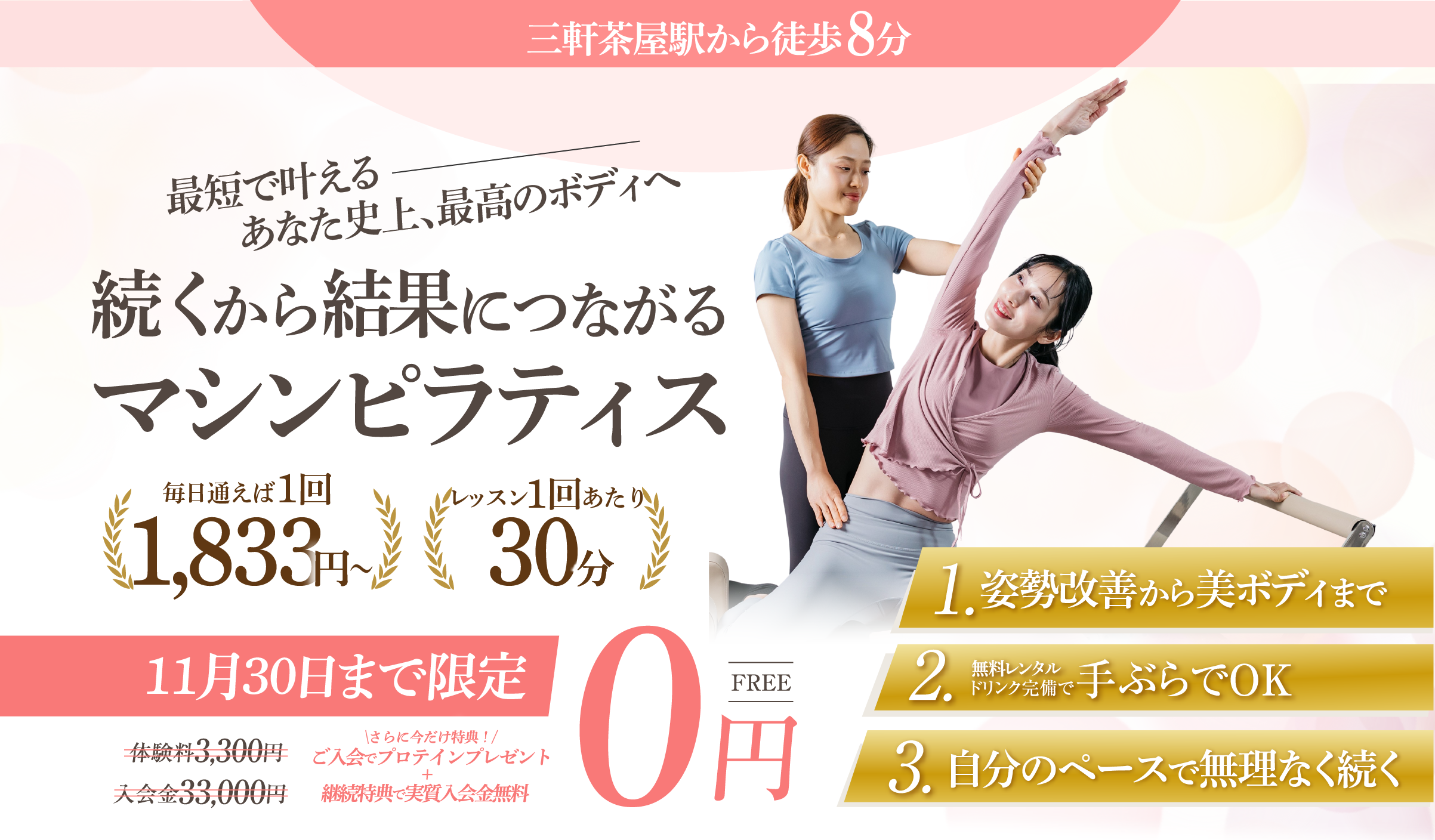 初めてのマシンピラティスでちょっと緊張しましたが、トレーナーさんがとても丁寧に優しく教えてくださるので、安心して受けることができました。
