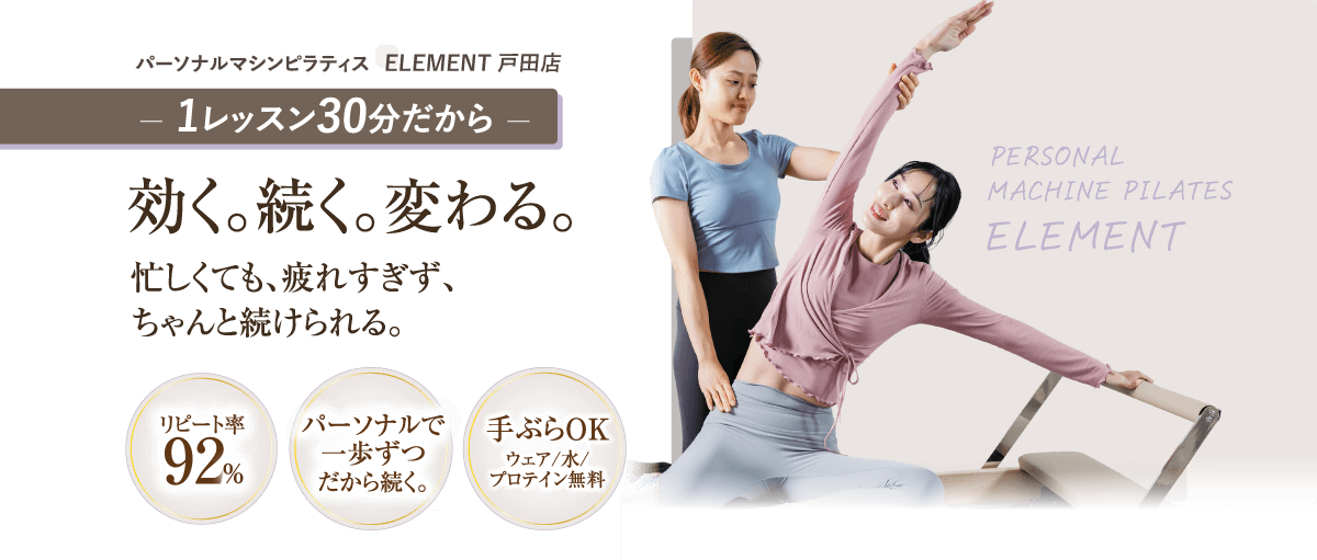ELEMENTは本当に結果を出してほしいから、マンツーマンのピラティスを提供しています。