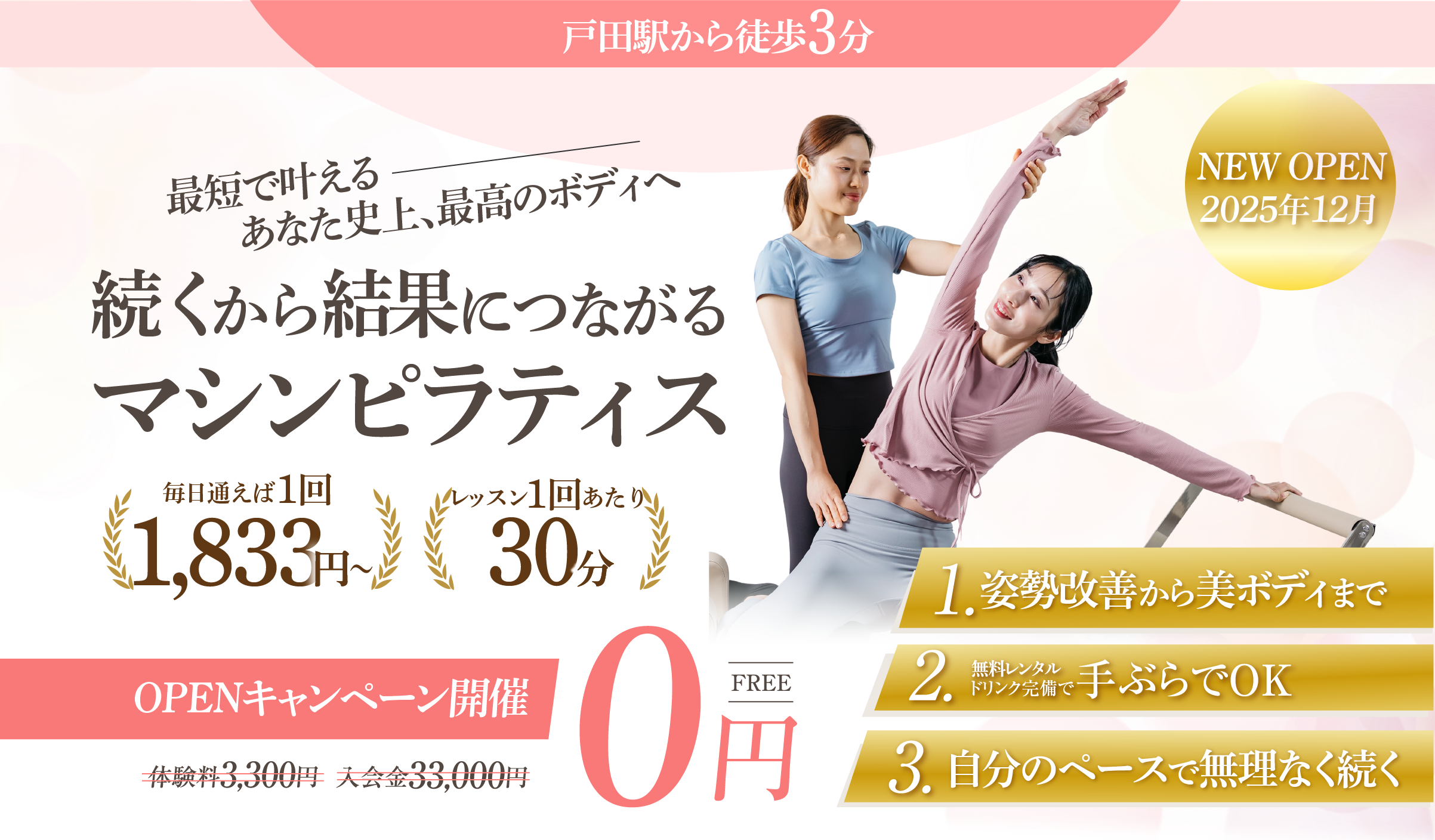 マシンピラティスでは、カラダを支えるインナーマッスルを中心に鍛えられます。 マシンを使って負荷を調整できるので、自重を支えきれない方や、 逆に自重では物足りない方でもレベルに合わせたレッスンが受けられるのがメリットです。